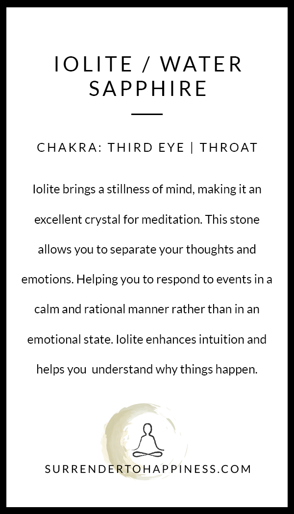 Iolite brings a sense of calm and stillness to mind, making it an excellent crystal for meditation.