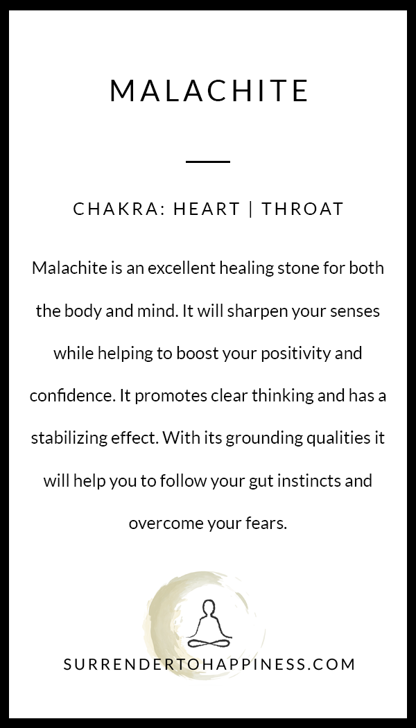 Malachite is a beautiful green healing stone for the body and mind that will sharpen your senses and help to boost your confidence.