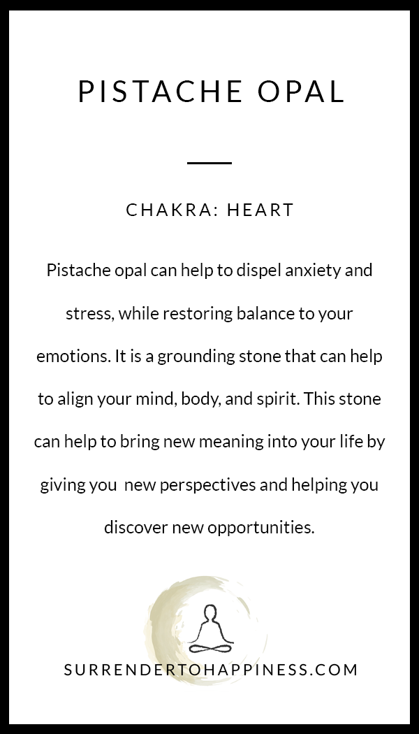 Pistache opal rough crystal is a pretty green-brown stone that promotes loving vibrations. This stone can help dispel anxiety and stress while restoring balance to your emotions and relationships. Pistache opal is a grounding stone that helps to align the mind, body, and spirit, which, in turn, can bring clarity and strength. This stone can help bring new meaning into your life by giving you a new perspective and allowing you to see new directions and opportunities. Meditate with this stone, and you will find it deepens the meditative process, or if you are struggling to sleep, try having a piece of this nearby, as it is believed to improve and deepen your sleep. For more information on this stone, click here.